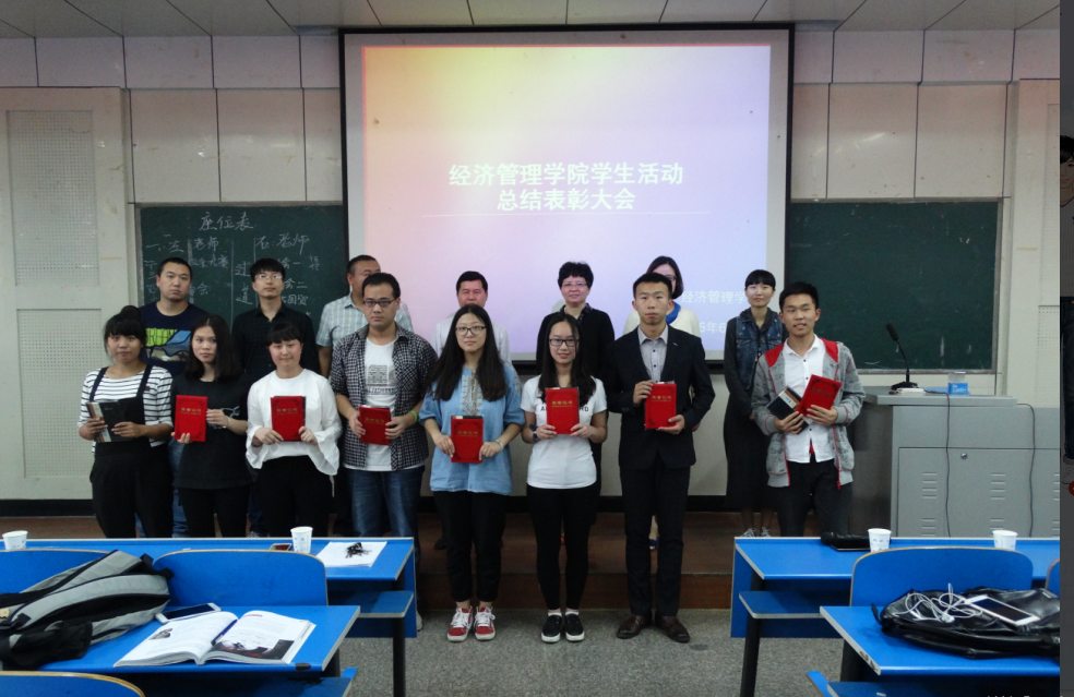 大会伊始,刘嘉俊副书记首先祝贺经管学子取得优异表现,为院系争得荣誉,同时也希望同学们能再接再厉,展现经管院青春激昂的风貌。接着,在班级风采大赛中荣获一等奖的15级国贸班及14级工管班通过ppt依次向大家展示班级风采。随后,领导和老师为获奖班级和个人进行颁奖,表彰大会圆满结束。