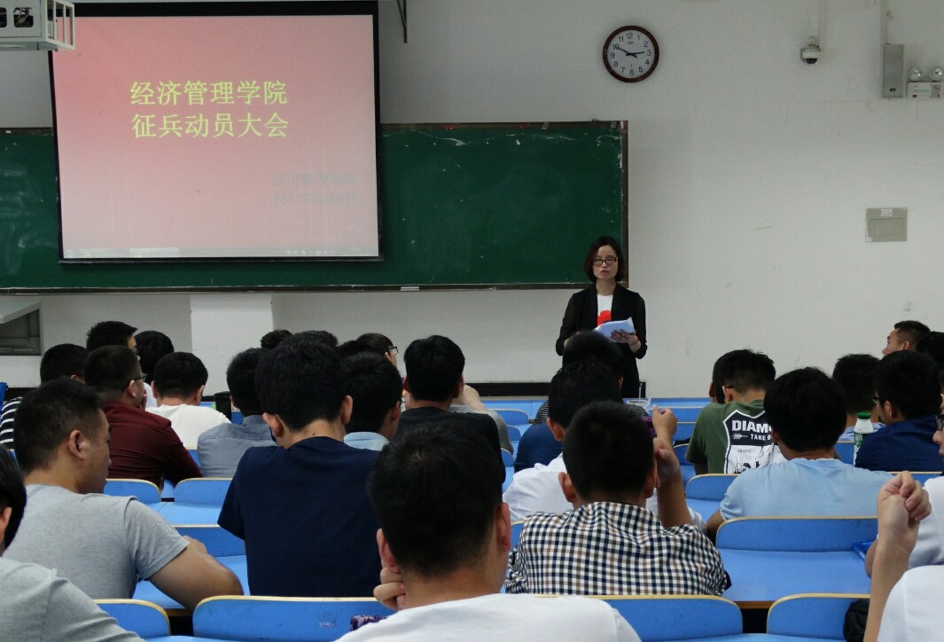为加强征兵政策宣传,做好2017年大员工应征入伍工作,6月8日下午,开户送58体验金官网召开征兵动员大会。开户送58体验金官网团总支书记张小雪担任主讲人,14级全体男生参加了此次大会。