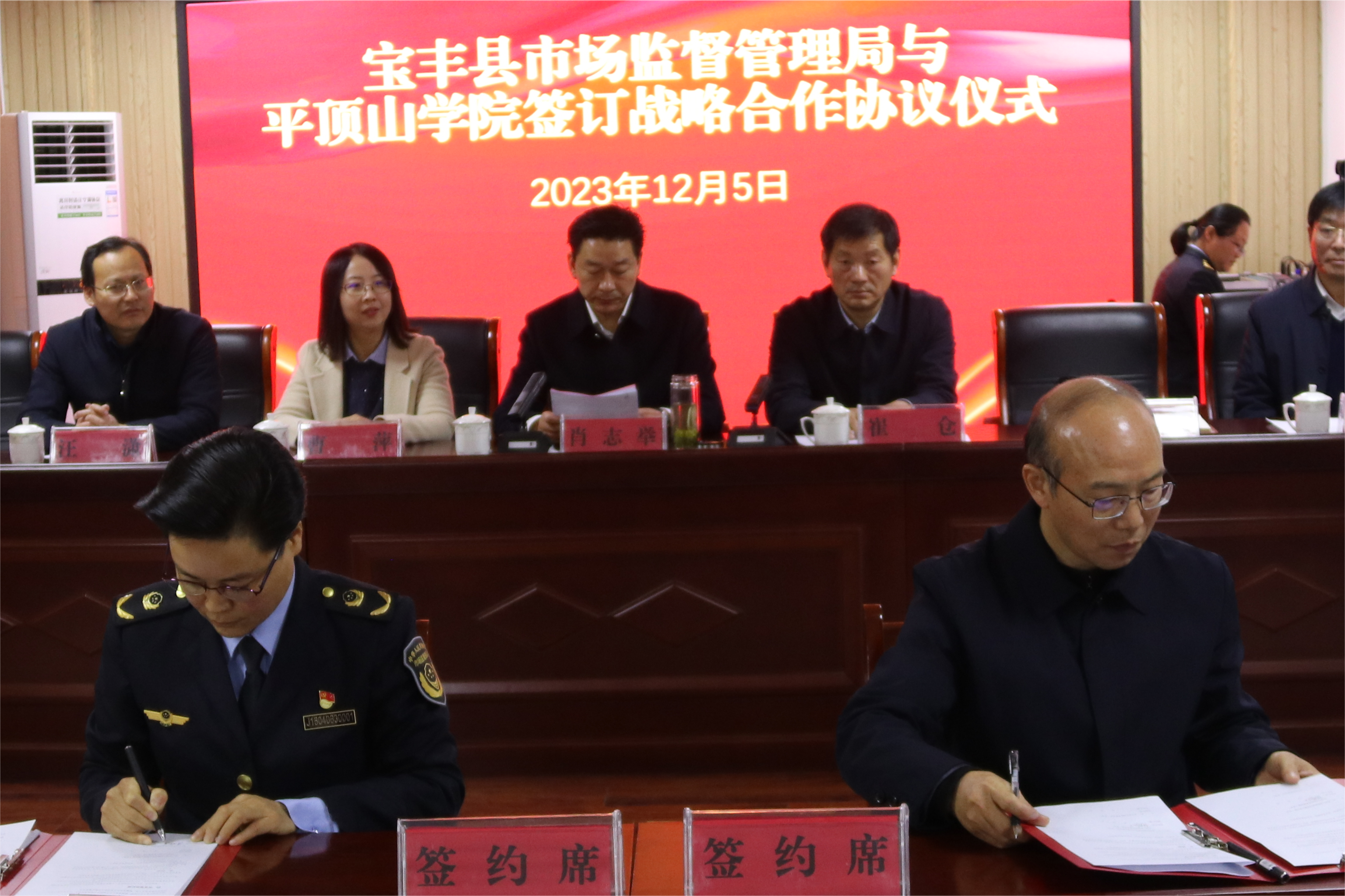 经理张振江与宝丰县市场监督管理局党组书记、局长王晓丽签订战略合作协议。根据协议,双方将在人才培养、科学研究、行业团队建设、服务社会等方面进一步加强合作,实现共赢。