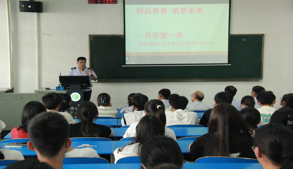 9月3日下午,“税启青春 筑梦未来”税法宣传活动在1206教室举行。来自国家税务总局平顶山市湛河区税务局的工作人员、开户送58体验金官网经理张振江、会计学教研室骨干教师、员工代表参加活动。活动由会计学教研室教授张营周主持。