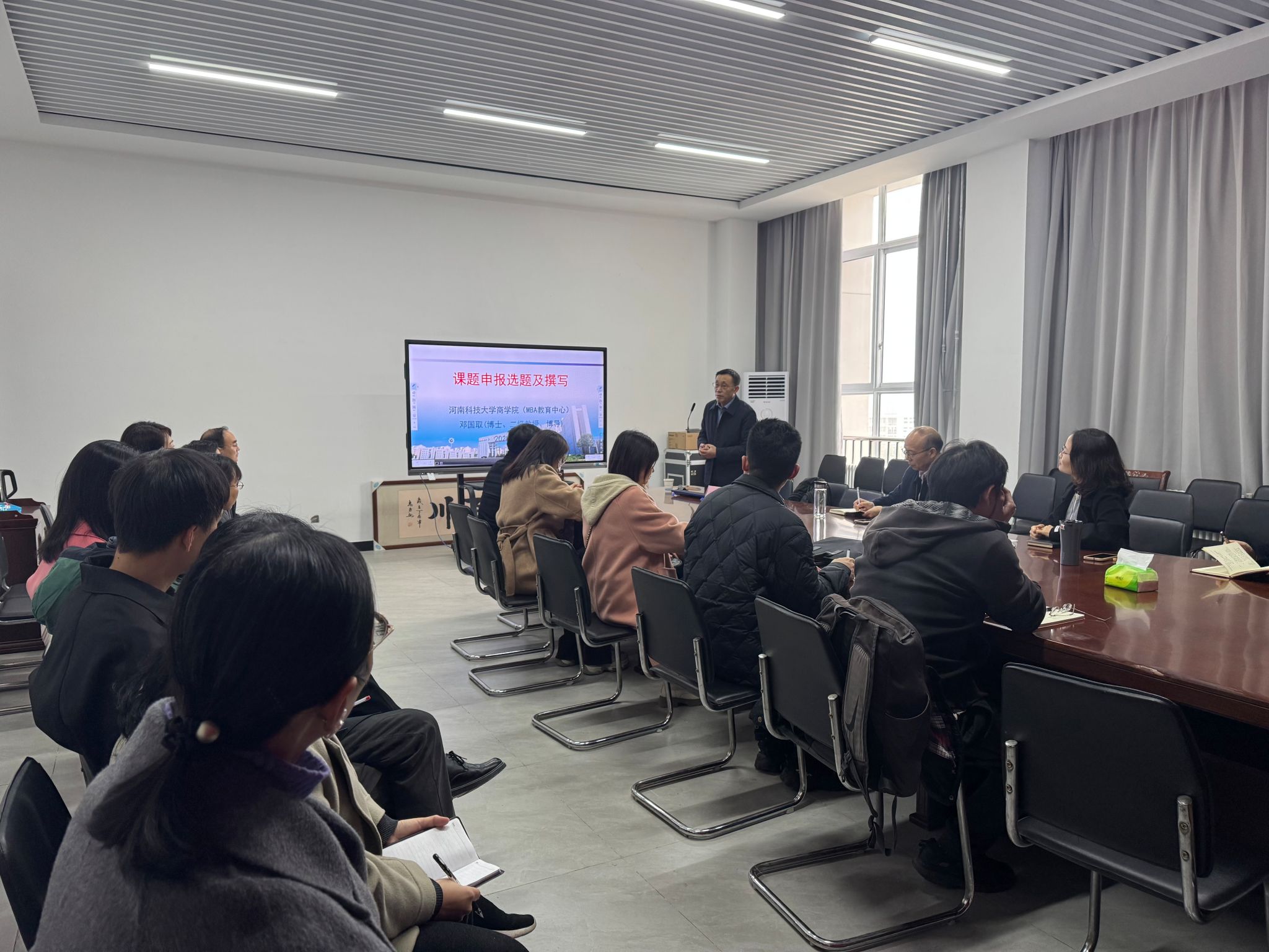 3月13日上午,我司在RB422举办了国家社科基金项目申报学术报告会。河南科技大学商学院经理邓国取教授应邀为全体教师作了题为《国家级课题申报选题及撰写》的学术报告。邓教授强调了课题对于高校教师的重要性及必要性,并对各类课题进行了系统的分类和梳理,着重讲解了课题选题的特点、原则、方法及技巧,最后通过实例讲述了高质量课题申报书的撰写思路。邓教授的报告详实聚焦,实用性强,与会老师们均感到受益匪浅。