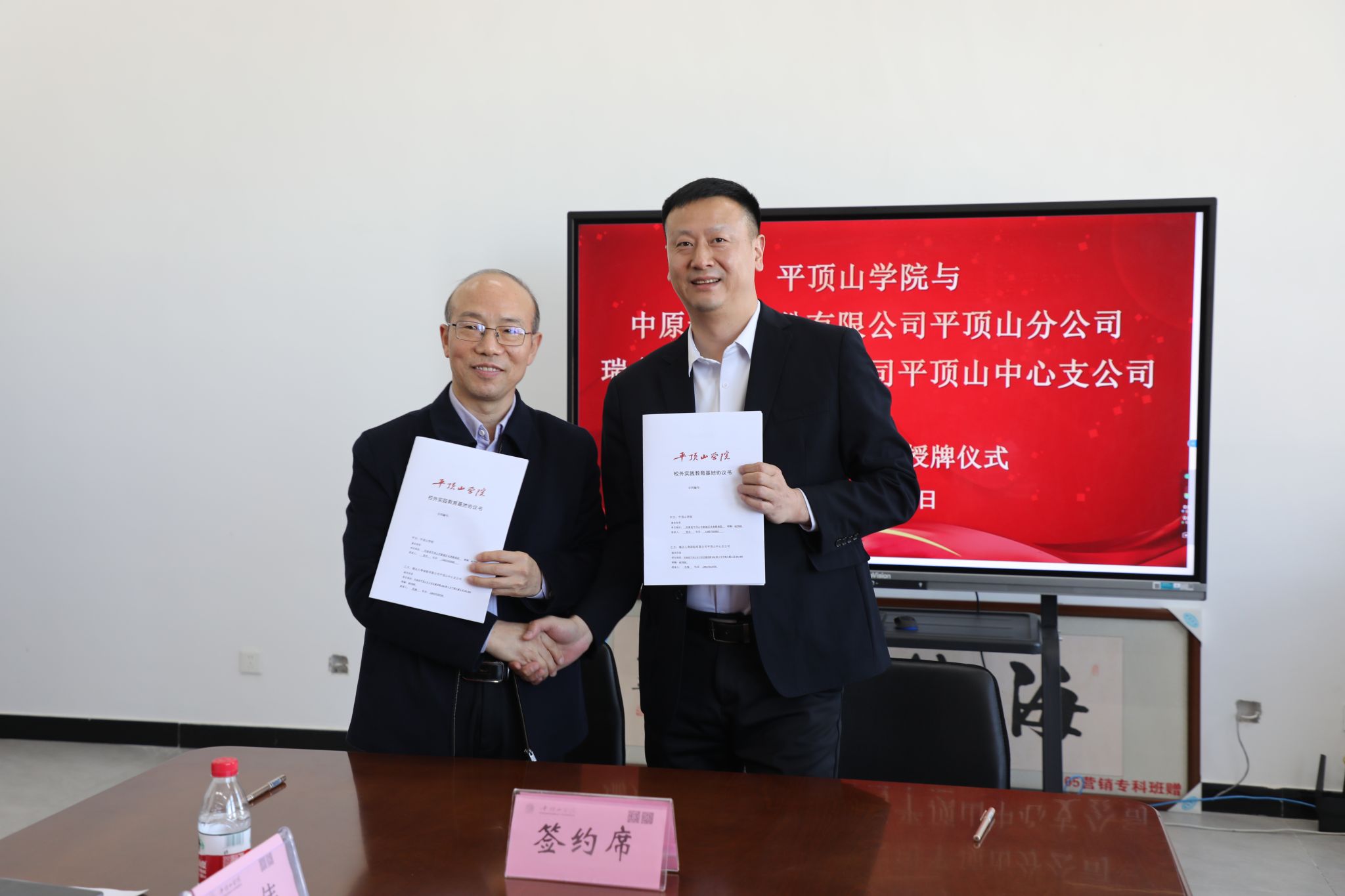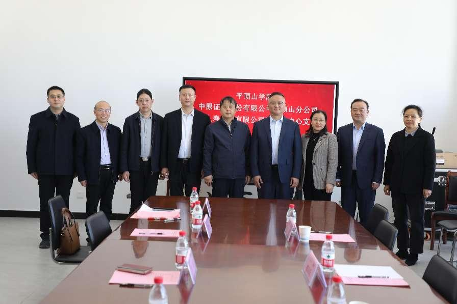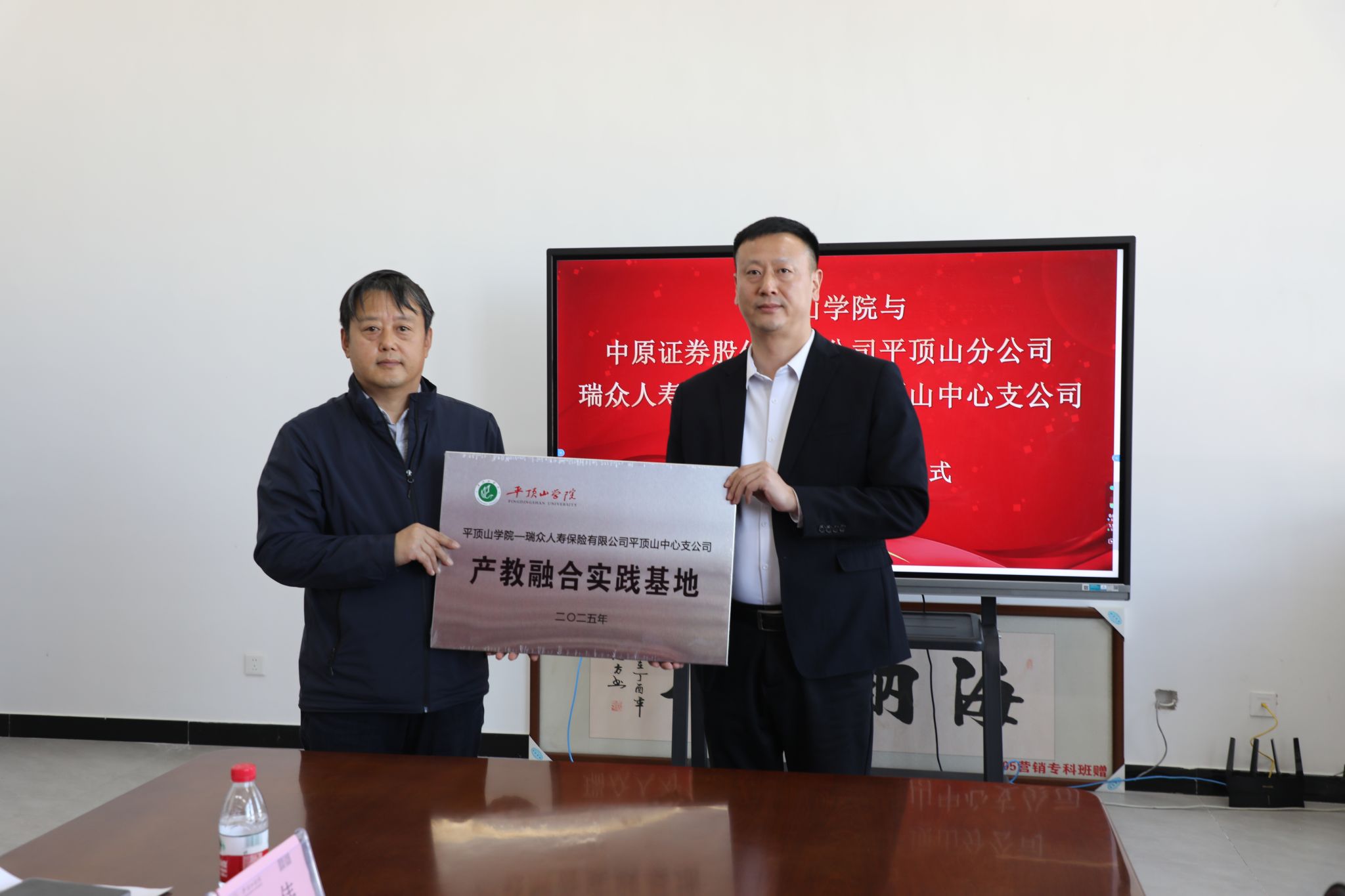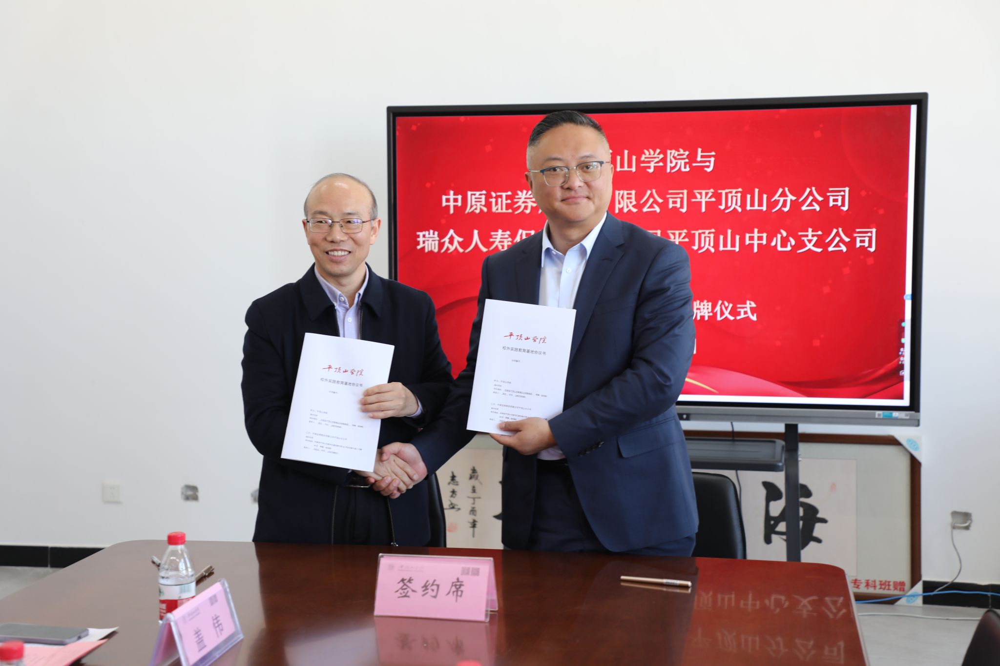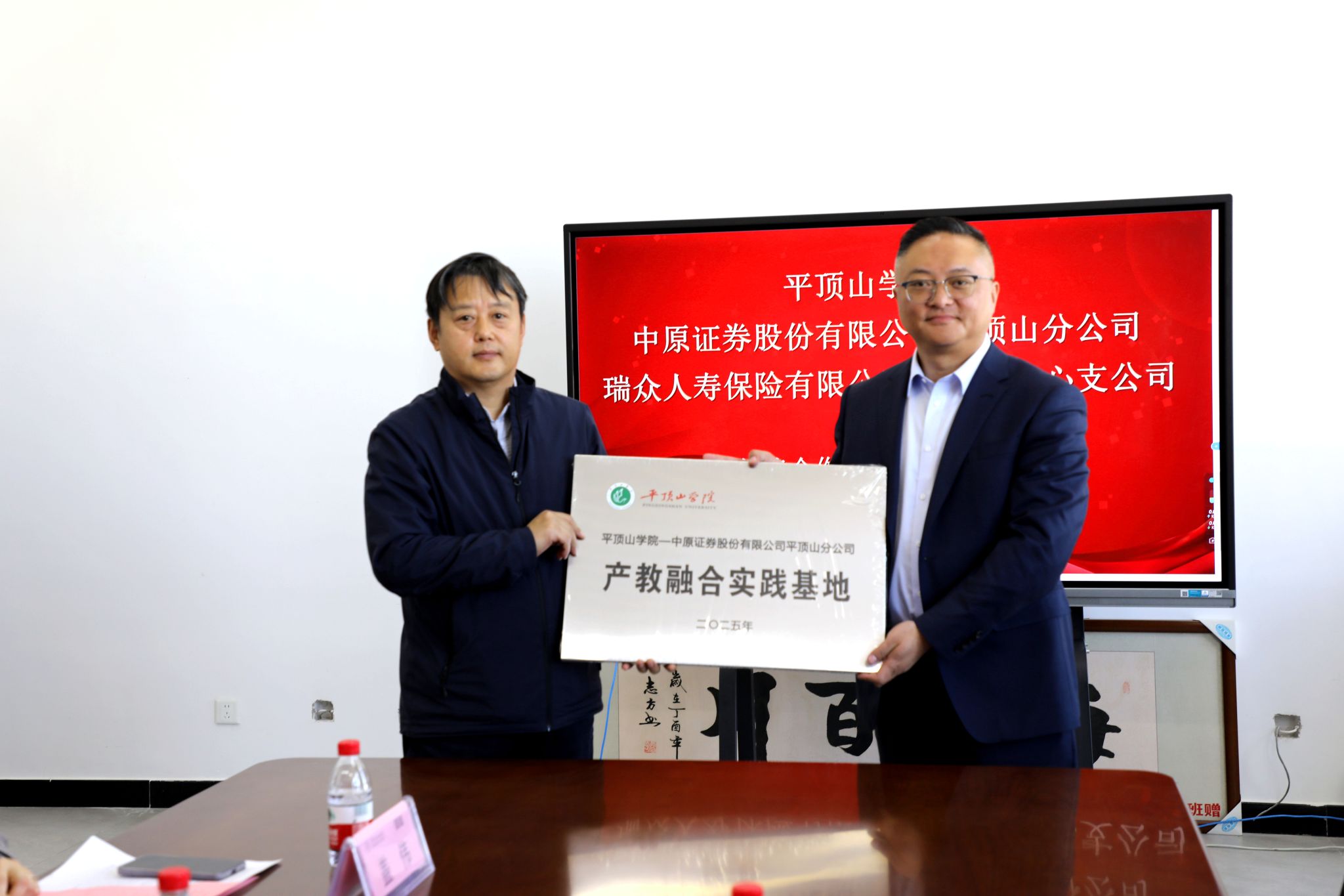 2025年3月20日下午2点,我司与中原证券股份有限公司平顶山分公司、瑞众人寿保险有限公司平顶山中心支公司战略合作签约暨授牌仪式在行知楼RB422举行。此次活动标志着学院在深化校地、校企合作,促进教育链、人才链与产业链有机衔接方面迈出了重要一步。