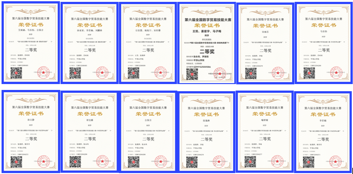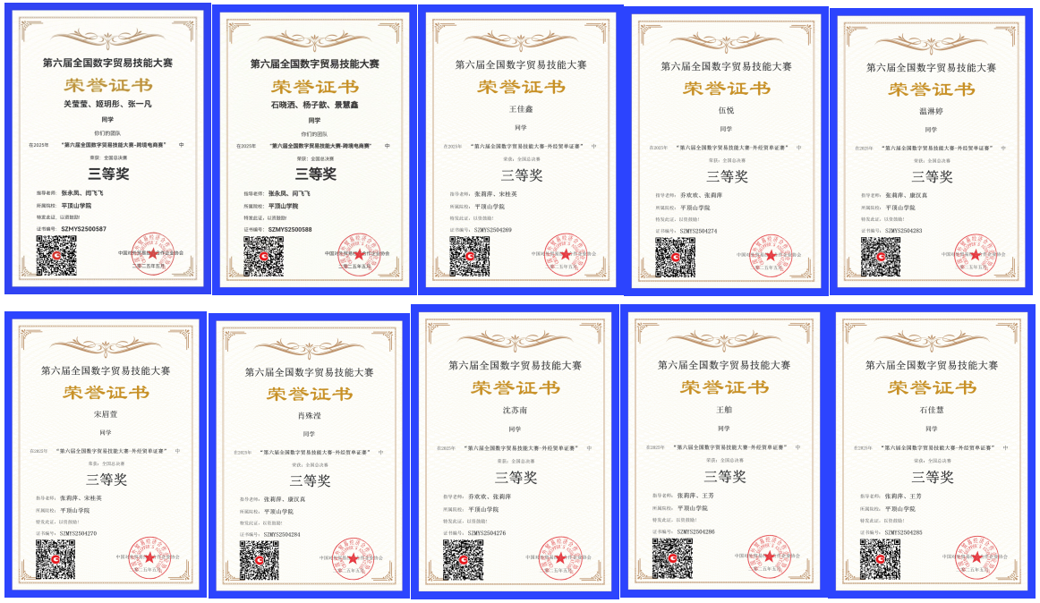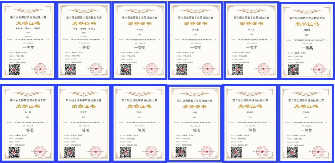 在我司张莉萍、乔欢欢、王芳、罗晨阳等老师的指导下,参赛员工凭借扎实的专业知识和出色的团队协作能力,在国际贸易赛项、跨境电商赛项和外经贸单证赛项三个赛道,共获得全国一等奖12项、二等奖12项、三等奖10项,学校荣获优秀组织奖,充分展现出师生的专业实力和创新精神。