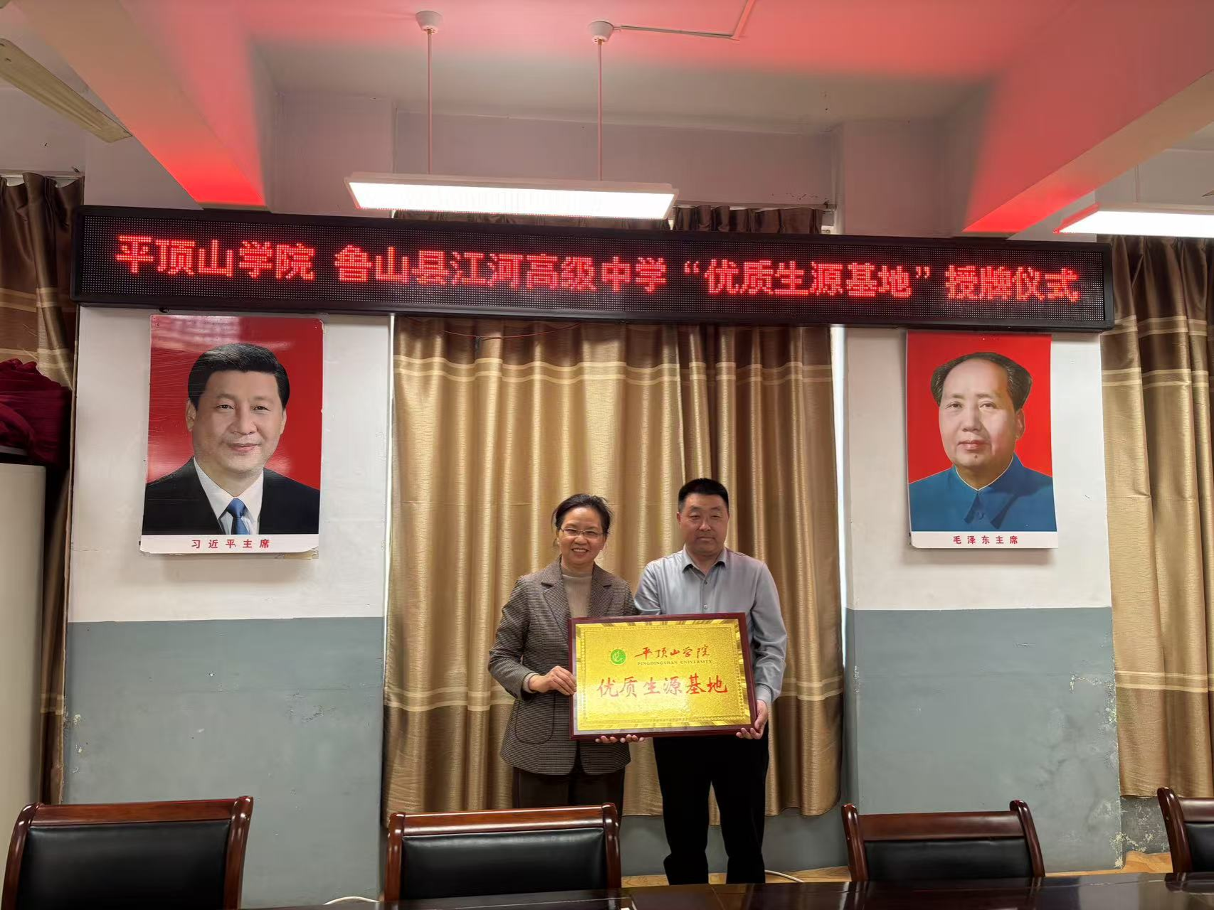 4月3日下午,我司党委书记刘嘉俊、党委副书记李刚一行前往鲁山县江河高中开展招生宣传与优质生源基地授牌活动。