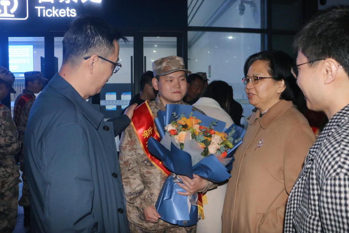 刘嘉俊向即将奔赴火热军营的新兵殷切嘱托,嘱托新兵要在艰苦环境中练就过硬本领、锤炼钢铁意志,努力成为有灵魂、有本事、有血性、有品德的新一代革命军人。同时也要勤奋学习、用高尚的军人风貌严格要求自己,服从命令、听从指挥、严守纪律,努力为家人争光、为学校添彩、为国家立功。