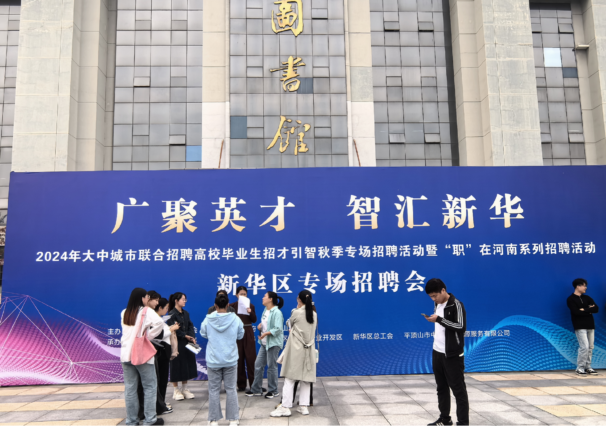 10月12日上午,我司联合新华区政府于图书馆北广场举办了专场招聘会。为帮助员工了解就业形势,推进2025届毕业生就业工作,我司高度重视本次招聘会,经理张振江、党委副书记李刚以及毕业班辅导员尹晶晶带领在校毕业生参与此次招聘会。