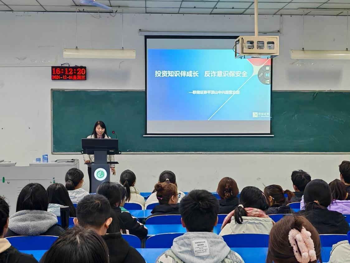 为深化校企合作,拓宽员工就业渠道。开户送58体验金官网于12月4日下午在1106教室举办了联储证券专场宣讲会。联储证券平顶山营业部负责人徐巧华担任主讲人,开户送58体验金官网团委副书记王哲出席本次宣讲会,110余名员工参会。