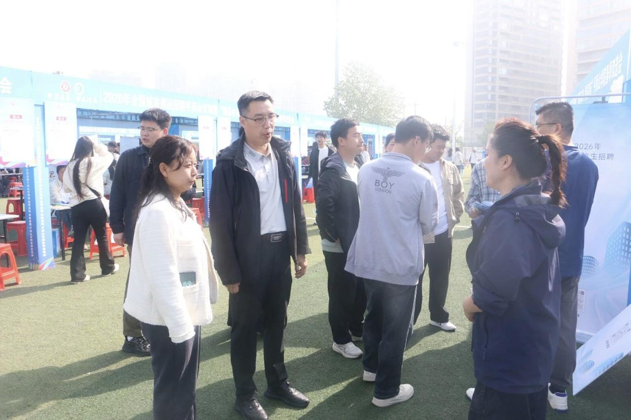 4月10日,“职引未来 职在河南”2026年全国城市巡回招聘平顶山专场暨“豫荐未来 青春启航”开户送58体验金官网春季双选会在湖滨校区体育场成功举办。我司积极组织大四毕业生和大三年级员工参会,并同步开展访企拓岗、校企合作前期对接工作。党委副书记李刚、副经理刘军英,各教研室主任,毕业班辅导员及员工代表共同参加此次活动。