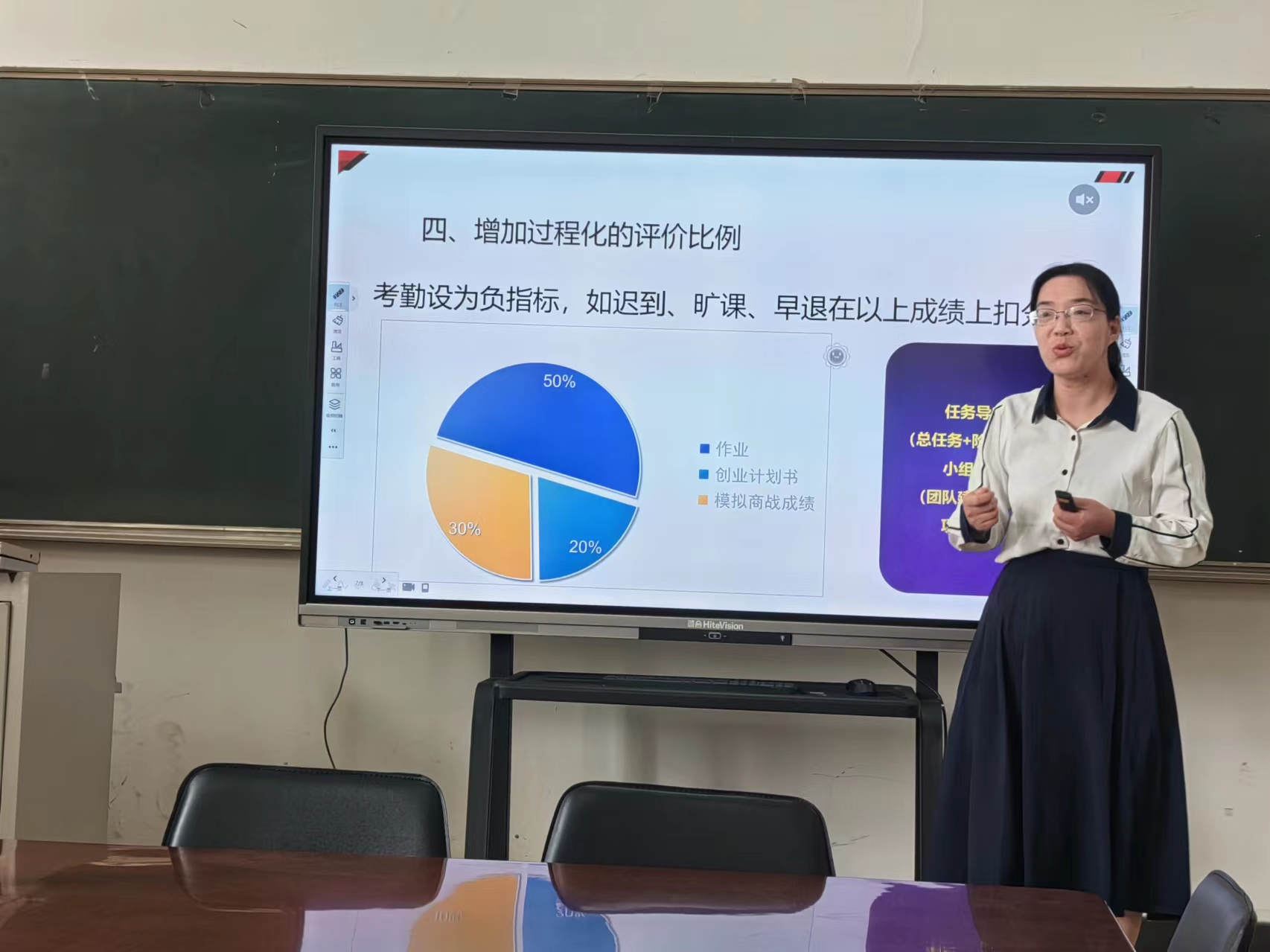 2024年4月28日下午,我司在1410教室成功举办了主题为“课程思政视域下《创业实训》课程的评价探讨”的教学沙龙。此次活动由我司副经理杨玉敬主持,全院教师参加了此次活动。
