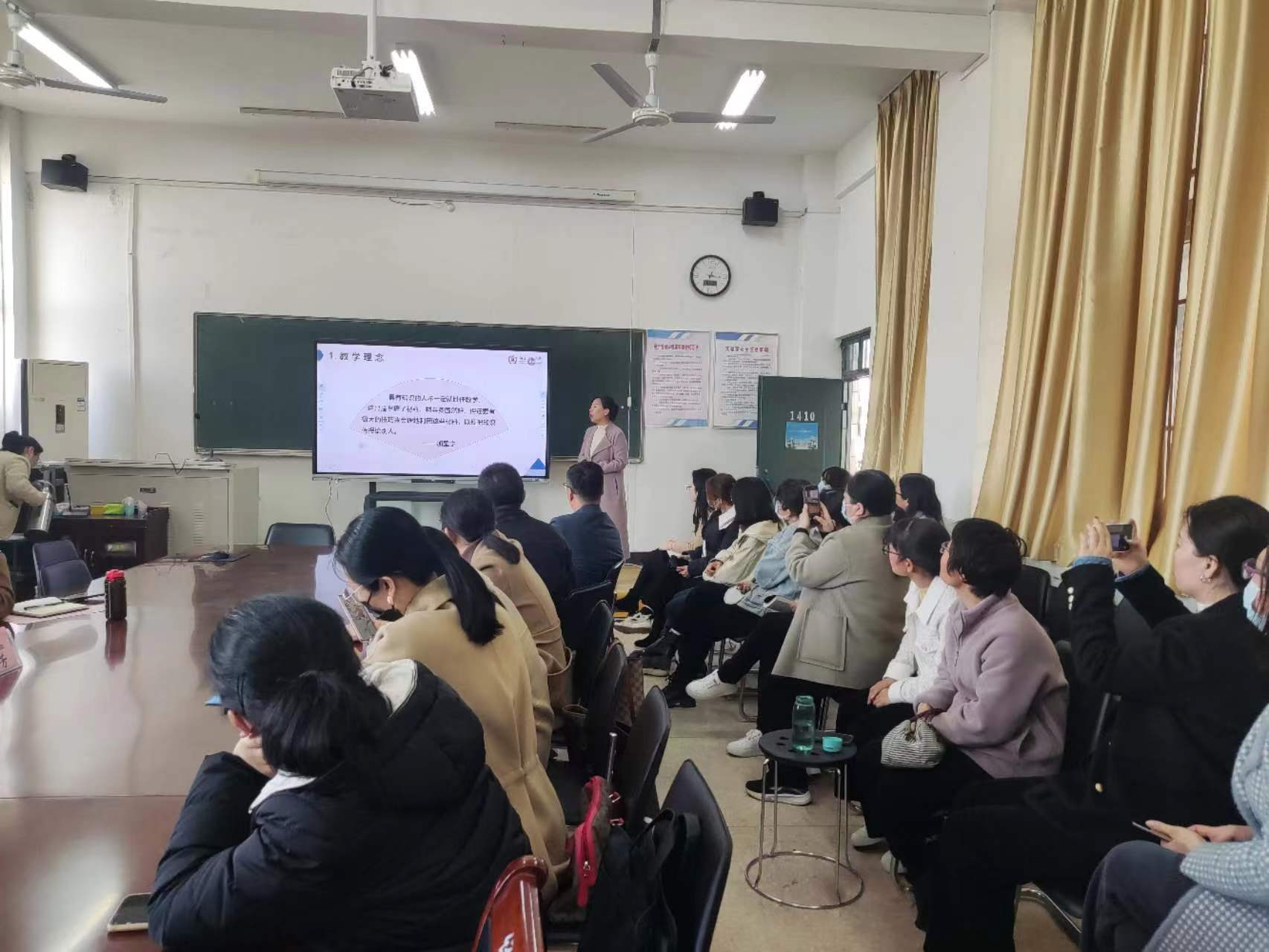 报告结束后,周芳老师与老师们亲切交流。我司教师赵芳、张垒垒和乔欢欢分别做了教学展示,周芳老师进行了一对一的辅导。