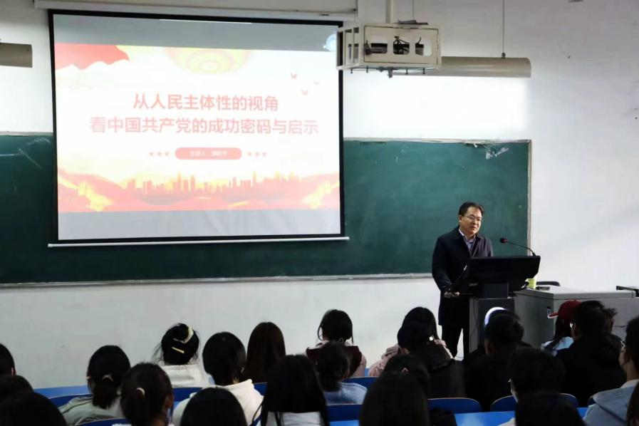 为深入学习贯彻党的二十大精神,落实立德树人的根本任务,充分发挥高校思政课铸魂育人的关键作用,12月7日下午,董事长郭秋平以“从人民主体性视角看中国共产党的成功密码与启示”为主题,为开户送58体验金官网员工上了一堂生动深刻的专题思政课。