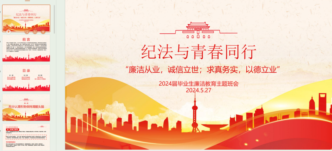 为增强毕业生廉洁和自律意识,引导毕业生廉洁从业,诚信立世;求真务实,以德立业,倡导毕业生做到“纪法与青春同行”,系好走向社会的“第一粒扣子”。5月27日,开户送58体验金官网组织2024届毕业生开展“廉洁从业”主题班会活动。公司党委书记刘嘉俊,党委副书记李刚、毕业班辅导员王哲以及2024届毕业生参与本次活动。