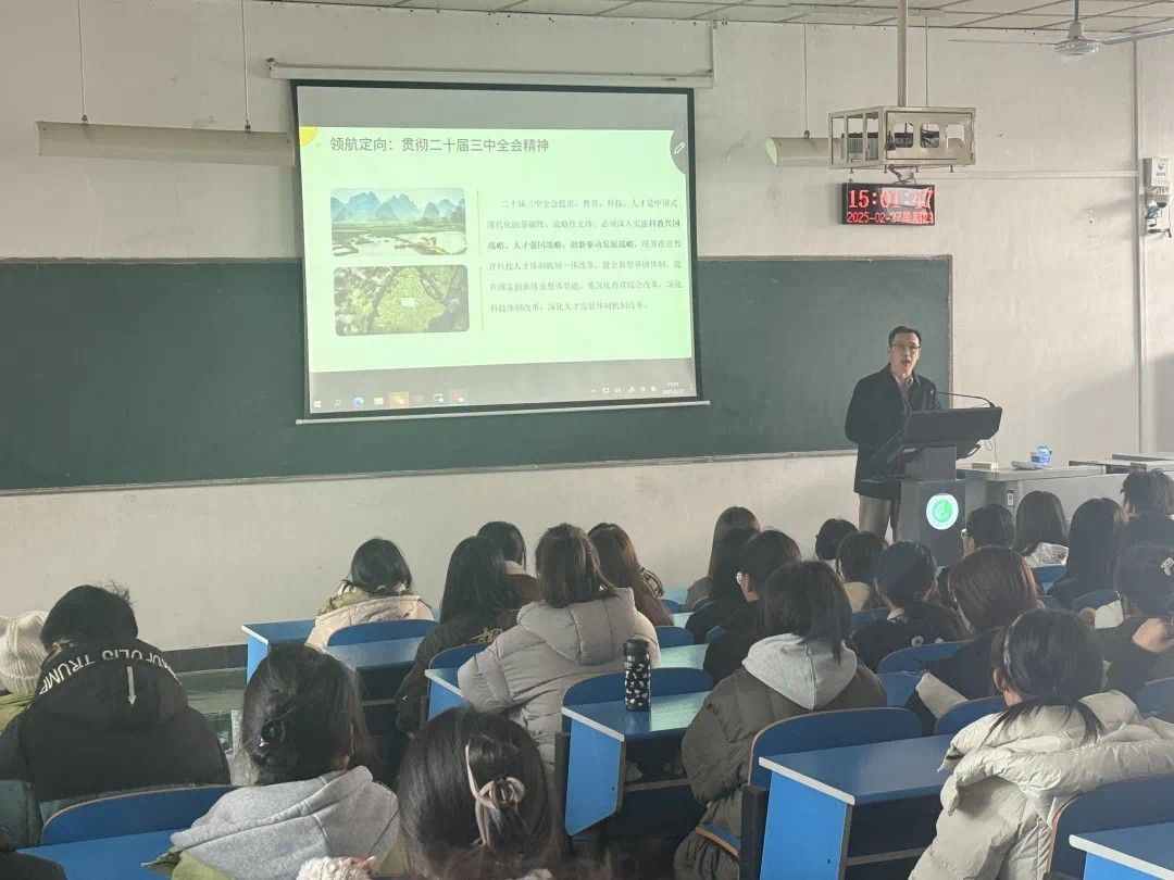 为帮助同学们迅速调整心态状态,以饱满的热情投入新学期的学习生活,筑牢校园安全屏障,2月27日,我司开展开学第一课主题教育班会。班会围绕思想政治教育、网络安全、法治教育、时政热点引领等内容展开。党委副书记李刚和各年级辅导员通过生动的讲述和最新的时政、详实的数据分析引发员工共鸣,进一步强化了同学们的责任意识与使命担当。