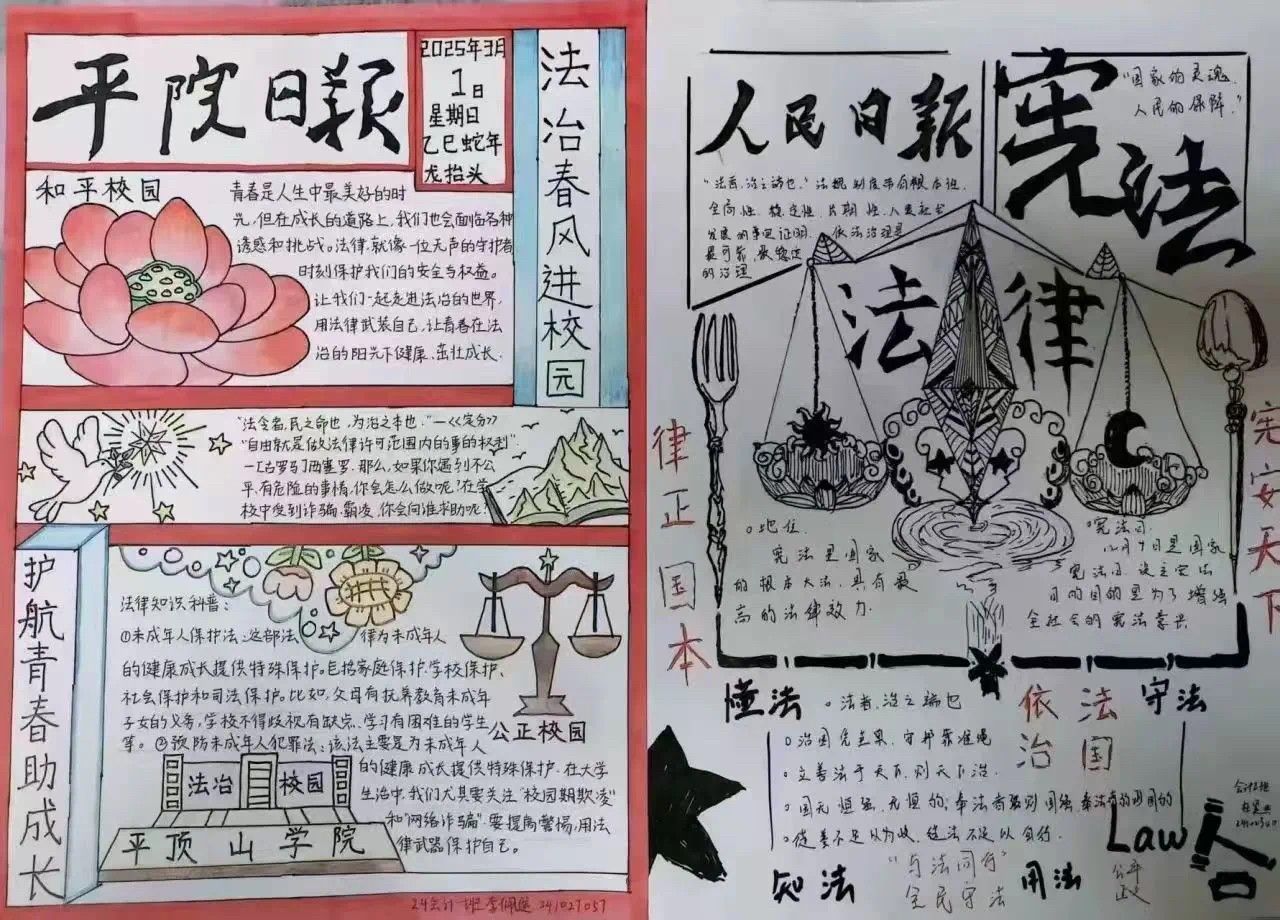 为提高大员工学习法律知识的自觉性和主动性,促进多样化宣传。我司举办了“法治春风进校园,护航青春助成长”主题手抄报创作活动。同学们以生动的图文诠释了宪法精神和法治原则。活动吸引了各班级员工的积极参与,大家以独特的视角和丰富的创意,展现了“尊法、学法、守法、用法”的法治校园文化,营造了浓厚的法治校园文化氛围。
