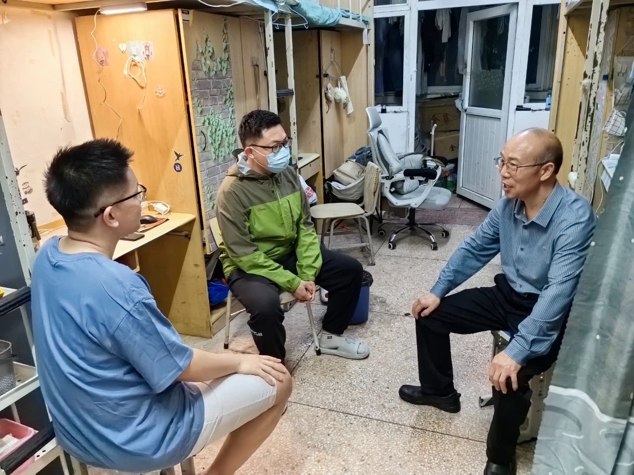 经理张振江走访毕业生宿舍了解员工毕业论文进展与就业情况。他仔细询问员工论文答辩进度及员工在答辩中遇到的难题,鼓励大家保持严谨态度,确保论文质量;同时倾听员工就业的去向和困惑,分享求职建议、推荐合适岗位,引导员工积极利用学院资源,拓宽就业渠道。