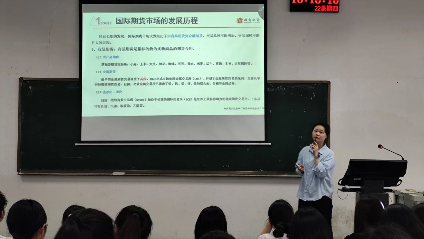为落实证监会与教育部联合发布的《关于加强证券期货知识普及教育的合作备忘录》的部署,提升大员工金融实践能力与风险意识。我司于5月22日下午4点在1207教室召开徽商期货讲座,徽商期货研究所分析师吴飘飘担任主讲人,2024级同学参与此次活动。