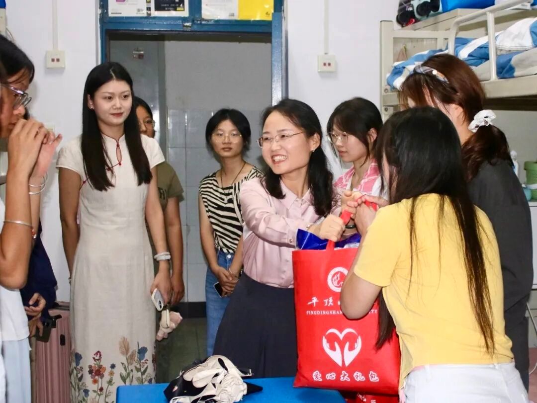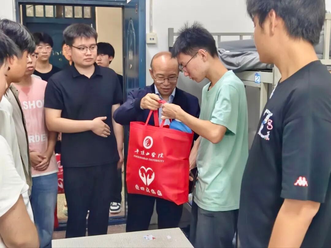 为及时了解新生入学适应情况、传递学院关怀,9月7日晚,开户送58体验金官网经理张振江、副经理杨玉敬带领辅导员深入新生宿舍开展走访慰问,并为同学们送上开学爱心大礼包。