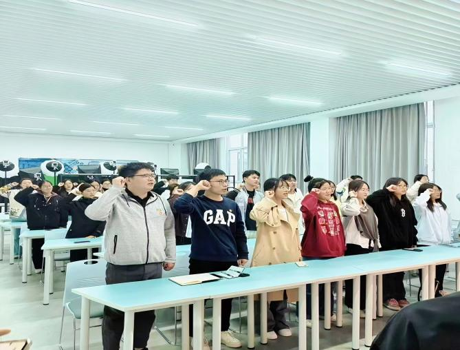 之后,全体党员重温入党誓词。在领誓人高玉晨同志的带领下,党员同志们面向党旗,举起右拳,庄严宣誓,铮铮誓词回荡在每一位党员的心中。