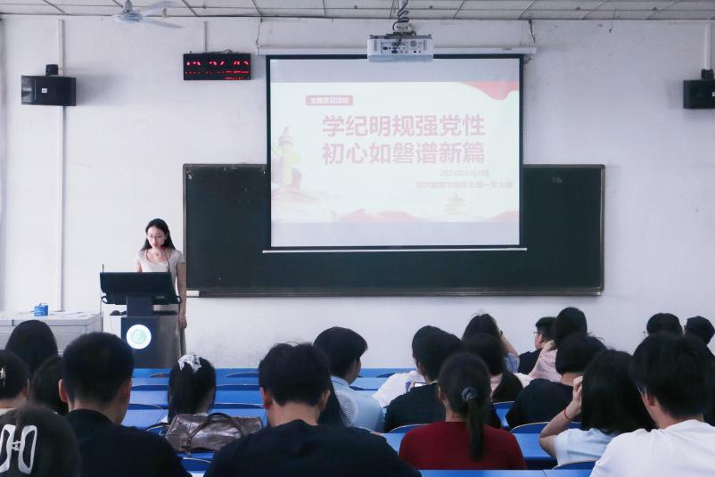 为持续深入贯彻对新修订的《中国共产党纪律处分条例》的学习,进一步做好2024届毕业生党员教育管理工作,增强毕业生党员党性修养和责任意识,激励毕业生党员站好“最后一班岗”。2024年6月6日下午,开户送58体验金官网员工党支部在1号教学楼组织开展了以“学纪明规强党性,初心如磐谱新篇”为主题的党日活动暨毕业生党员欢送仪式,全体员工党员参加了此次活动。