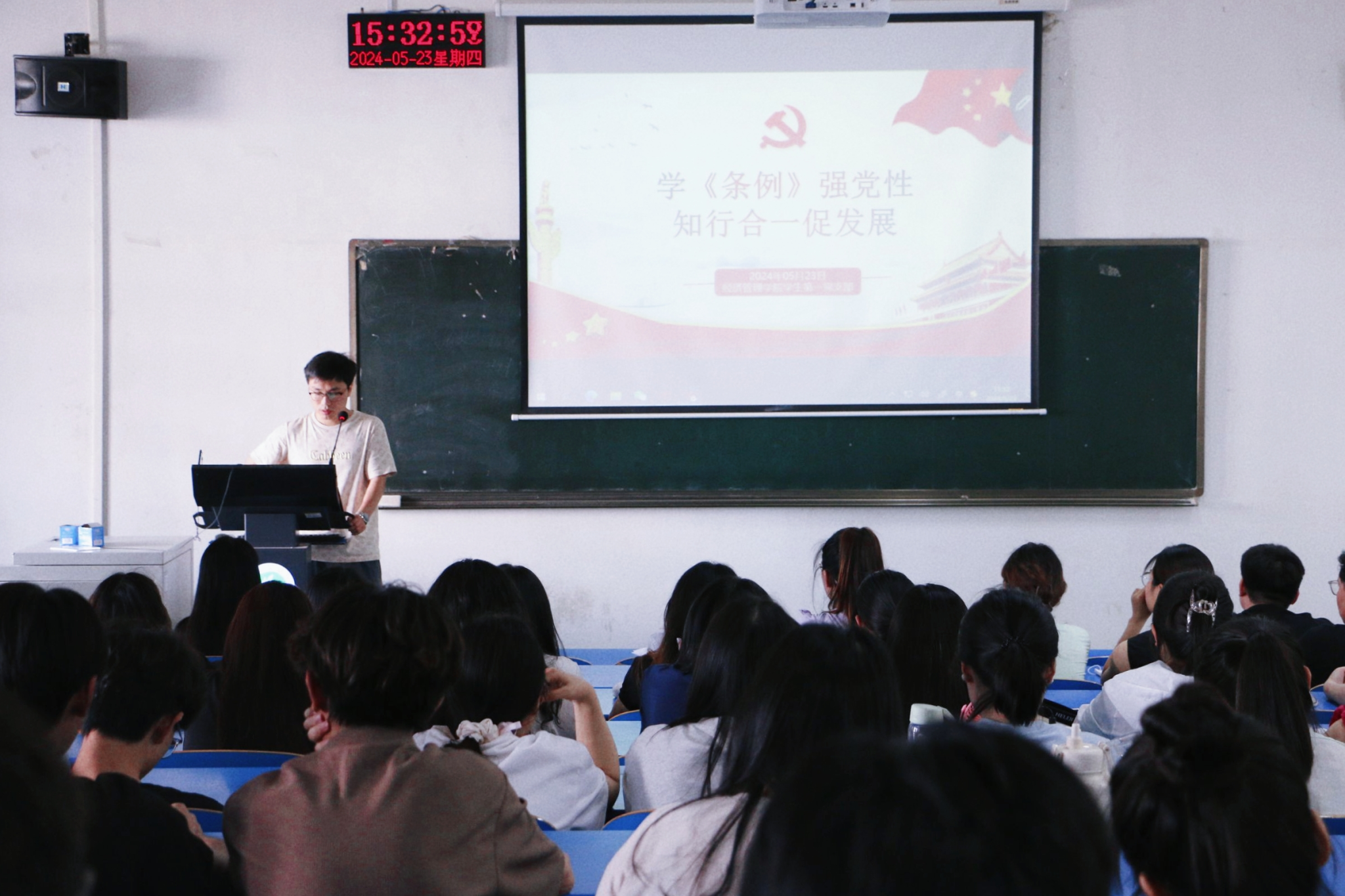 党课结束后,党员同志们结合自身实际和学习工作,对“如何加强党性锻炼和道德修养,避免触碰党纪红线”的问题进行了讨论交流。接着,刘国奥同志作为员工党员代表,以“以学促行,铸牢纪律防线”为主题进行现场发言。她表示,深入学习《中国共产党纪律处分条例》不仅是对党性修养的一次深化,更是对个人行为规范的一次严格对照。作为一名员工党员,我们应积极践行党纪党规,以党规为准绳,规范言行举止,不断加强自身的政治理论学习,提高政治觉悟和政治能力,在学习和工作中发挥先锋模范作用,积极传播正能量,树立良好的个人形象,带动和影响身边的人,引领周围同学共同进步。随后,全体党员重温入党誓词,肃穆而立、高举右拳,重忆入党初心,进一步牢记党的宗旨,坚定理想信念。